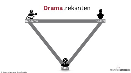Dramaet er i gang, og den anden psykologiske dynamik i offermentaliteten, dramatrekanten, er aktiveret.
